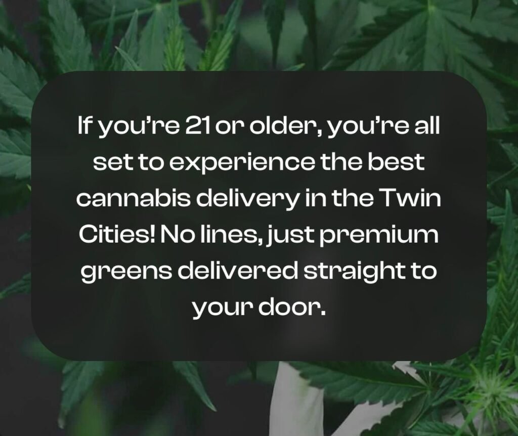 If you’re 21 or older, you’re all set to experience the best cannabis delivery in the The Cities! No lines, just premium greens delivered straight to your door.